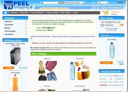 Vous pouvez la télécharger et l'installer sur tout serveur PHP / MySQL. Cette offre vous permet de réaliser une boutique de commerce électronique sur n'importe quel espace d'hébergement. Avec PEEL SHOPPING, mettez vos produits en ligne 24/24h avec une interface d'administration complète, simple à utiliser et totalement gratuite. Vous pouvez dès maintenant tester PEEL SHOPPING à partir du site de démonstration http://premium.peel.fr .
