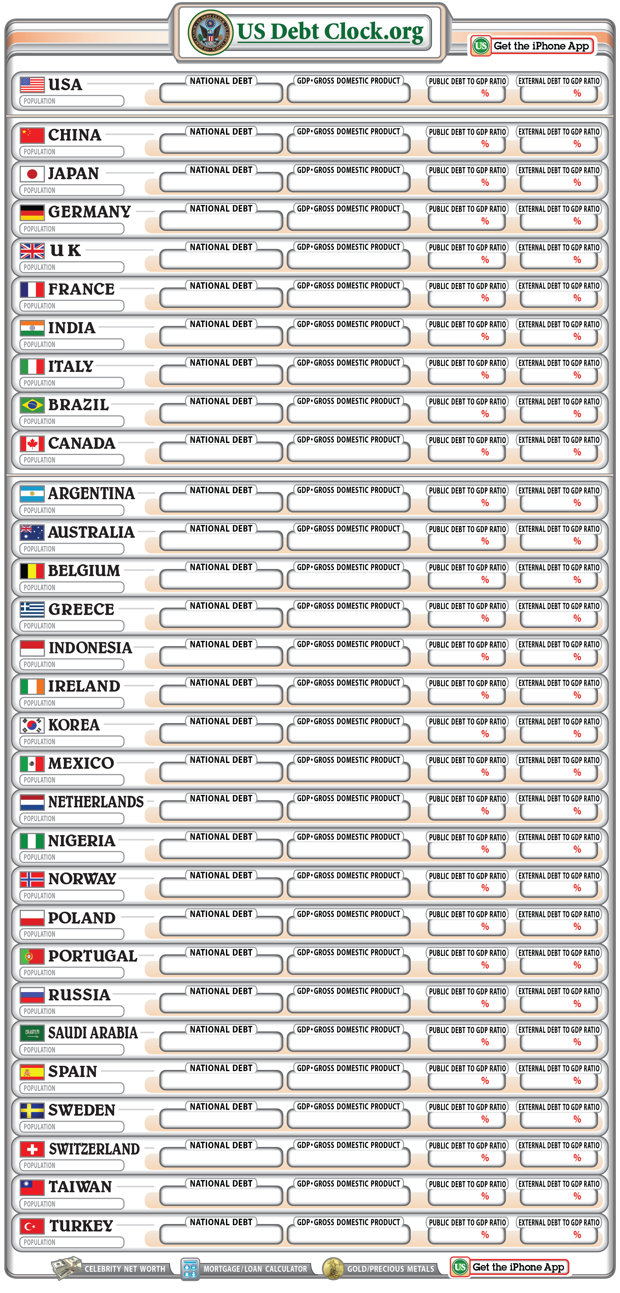 La dettes des pays en temps réel